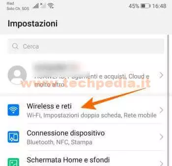 Per l'esempio utilizzo uno smartphone Huawei P Smart con Android 9, per altri smartphone o versioni Android possono cambiare i termini e/o i menu, ma la logica è sempre la stessa.