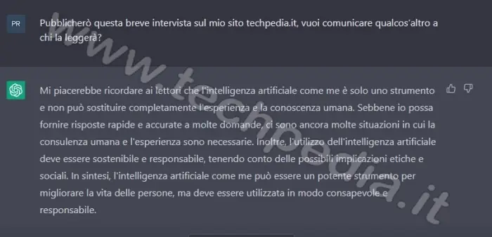 Questa è la breve intervista al modello di intelligenza artificiale ChatGPT di OpenAI che possiamo riassumere così: