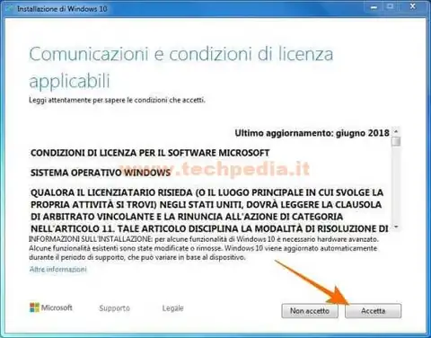 Dopo aver letto le condizioni di licenza clicca Accetta