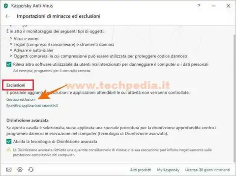 Il Tutorial ti guida ad inserire delle eccezioni con l’antivirus Kaspersky